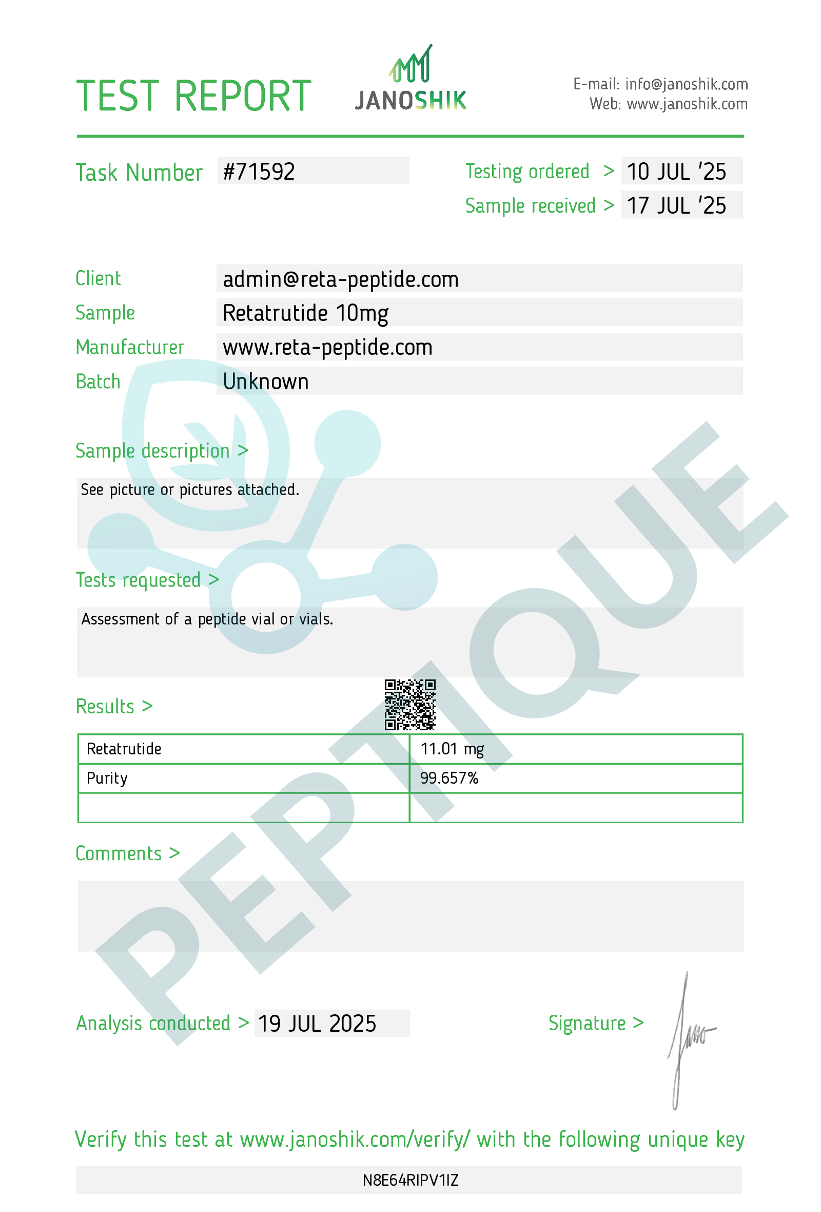 Retatrutide is an investigational peptide that functions as a triple receptor agonist, targeting GLP-1, GIP, and glucagon receptors simultaneously. These pathways are central to glucose homeostasis, lipid metabolism, and energy regulation. Due to this broad receptor activity, Retatrutide has attracted scientific attention as a potential next-generation incretin mimetic.