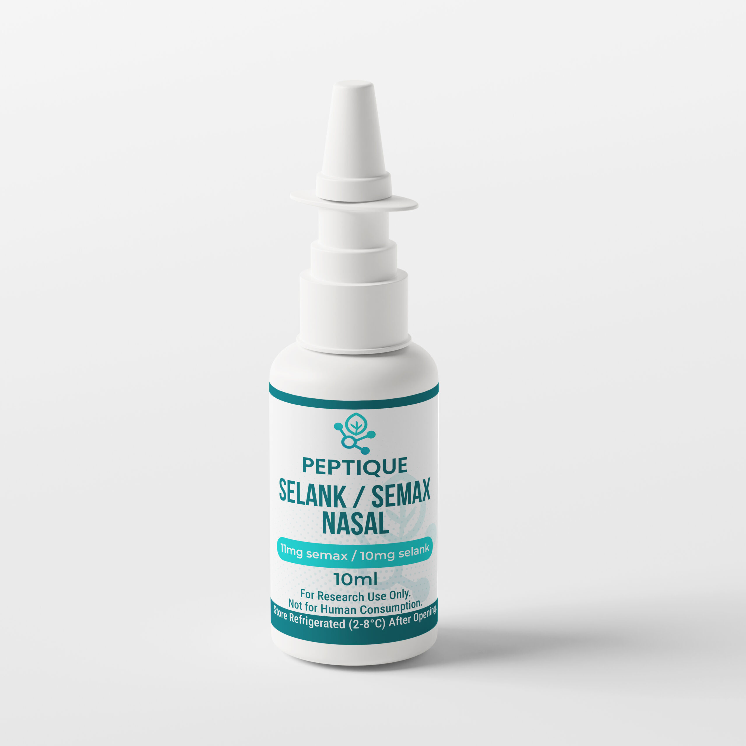 This dual-peptide formulation combines Selank and Semax into a single, pre-prepared nasal delivery system, designed for advanced research applications exploring cognitive and neurological pathways.